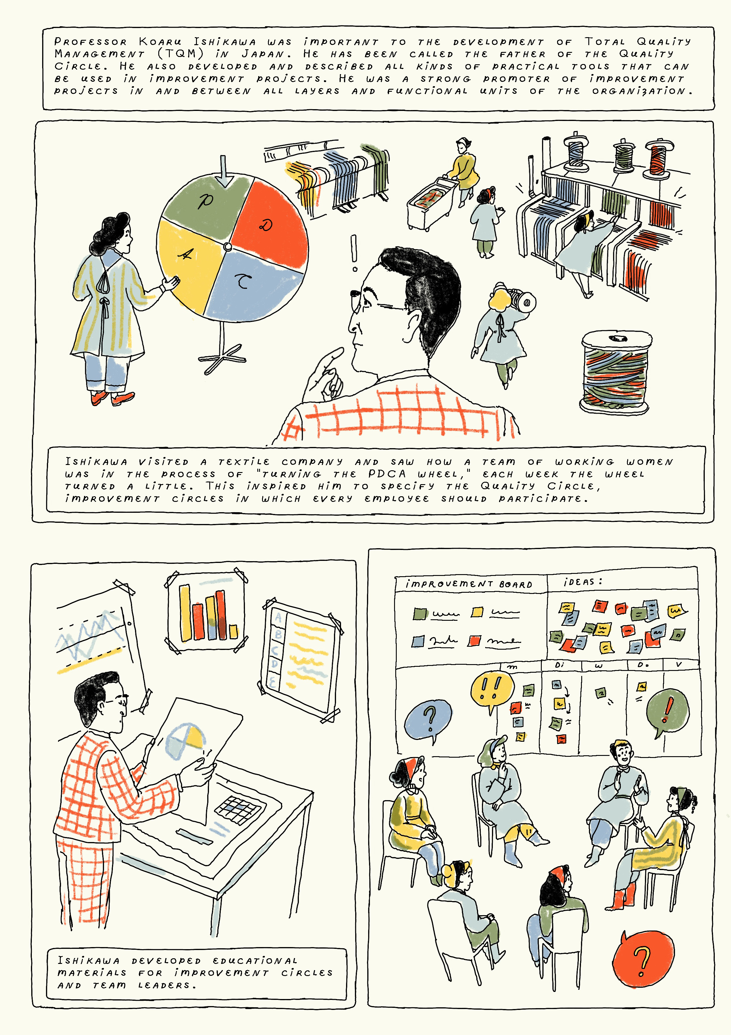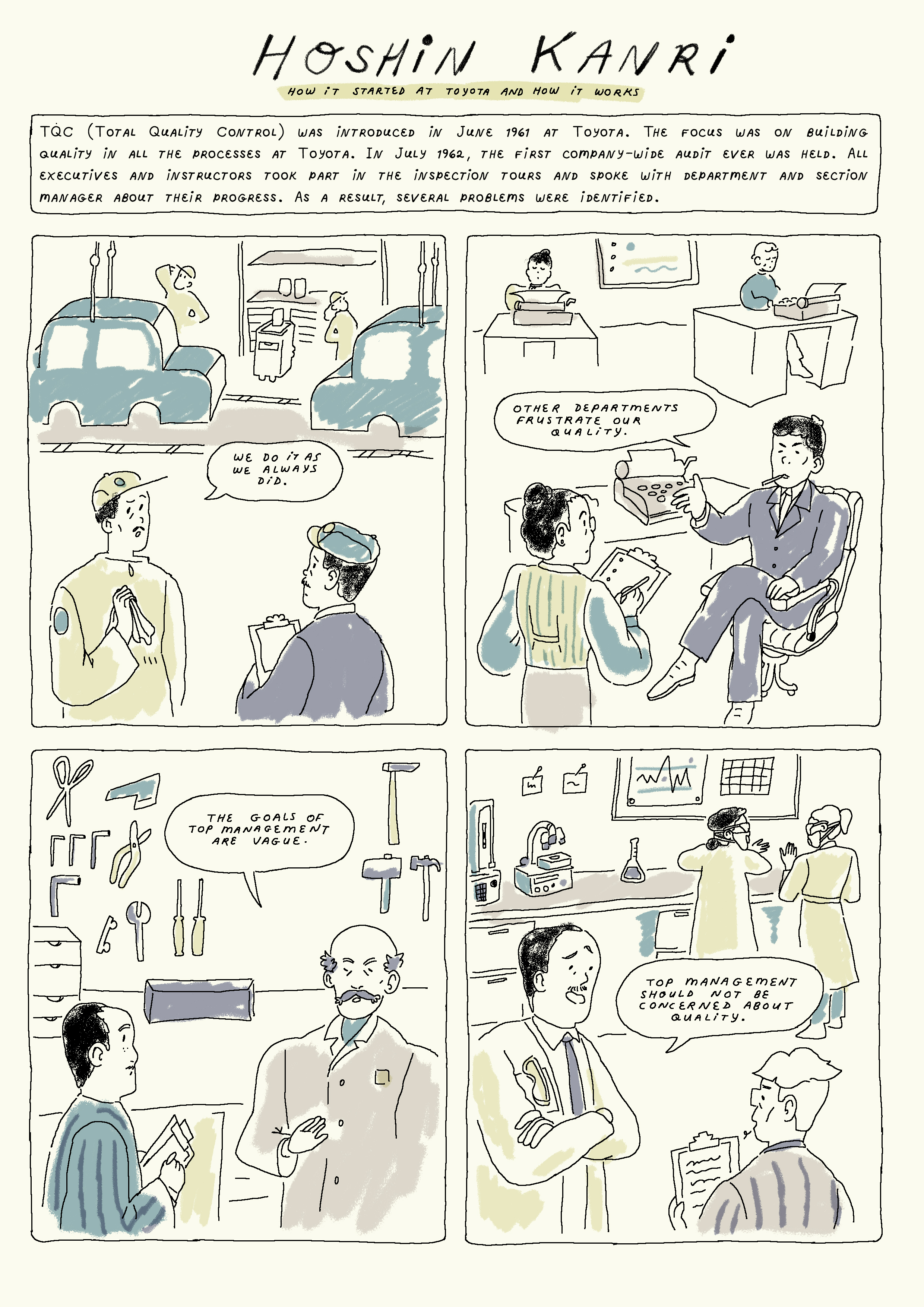 These comics are part of a project about Lean management and how it got started at Toyota. It was commissioned by Jannes Slomp, lecturer at HAN UAS, who is working on a series of books on the subject.