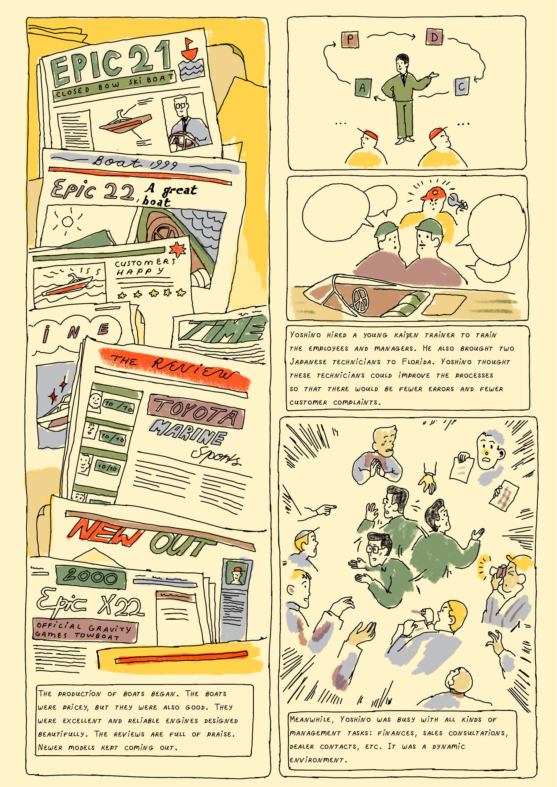 The comics feature Isao Yoshino, who has worked for Toyota in many managerial functions over the years and has shared several of his experiences for the project.