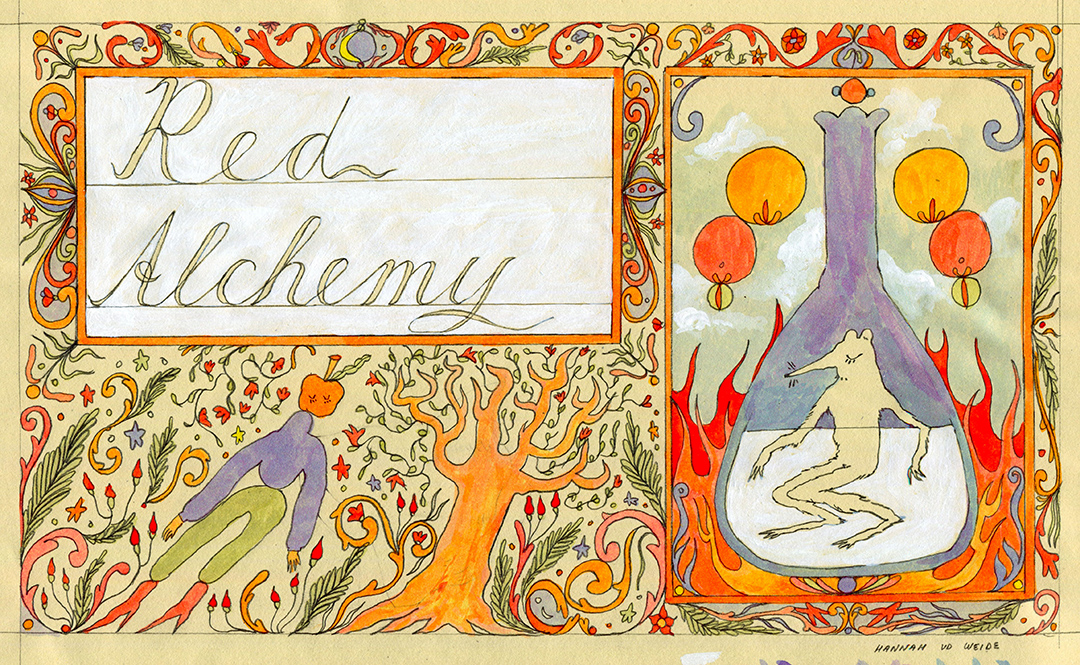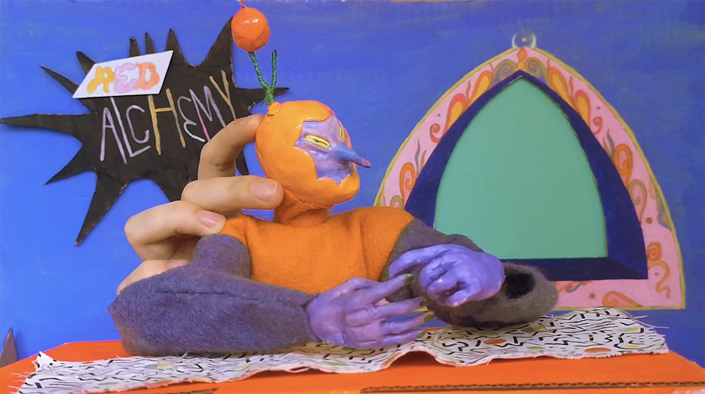 Red Alchemy is my graduation project. It is a narrative in the form of illustration, animation, writing and puppets about the devil on one's shoulder. This project came together as an amalgamation with no definitive form. I started with writing, creating puppets, and then making illustration and animations based on them.