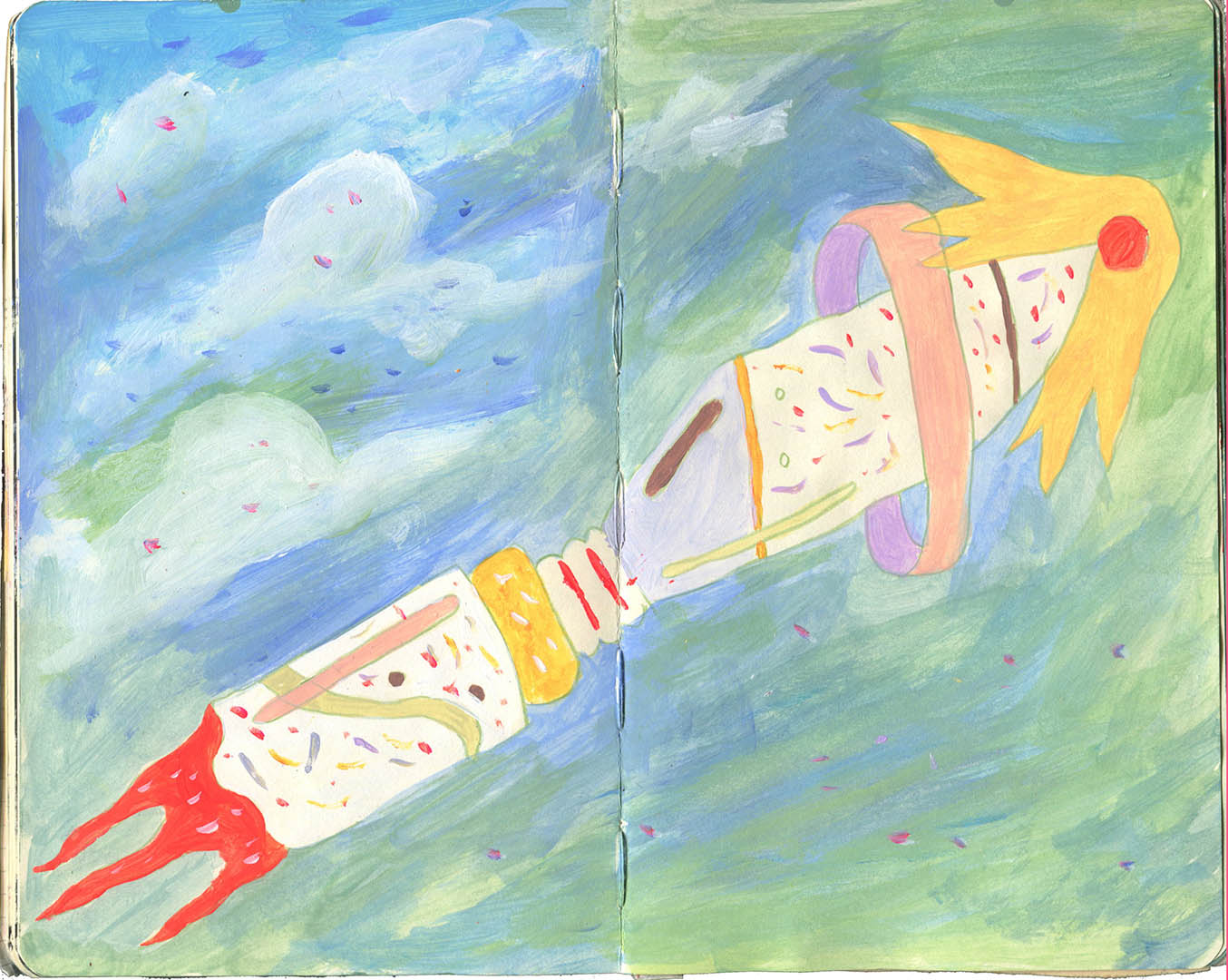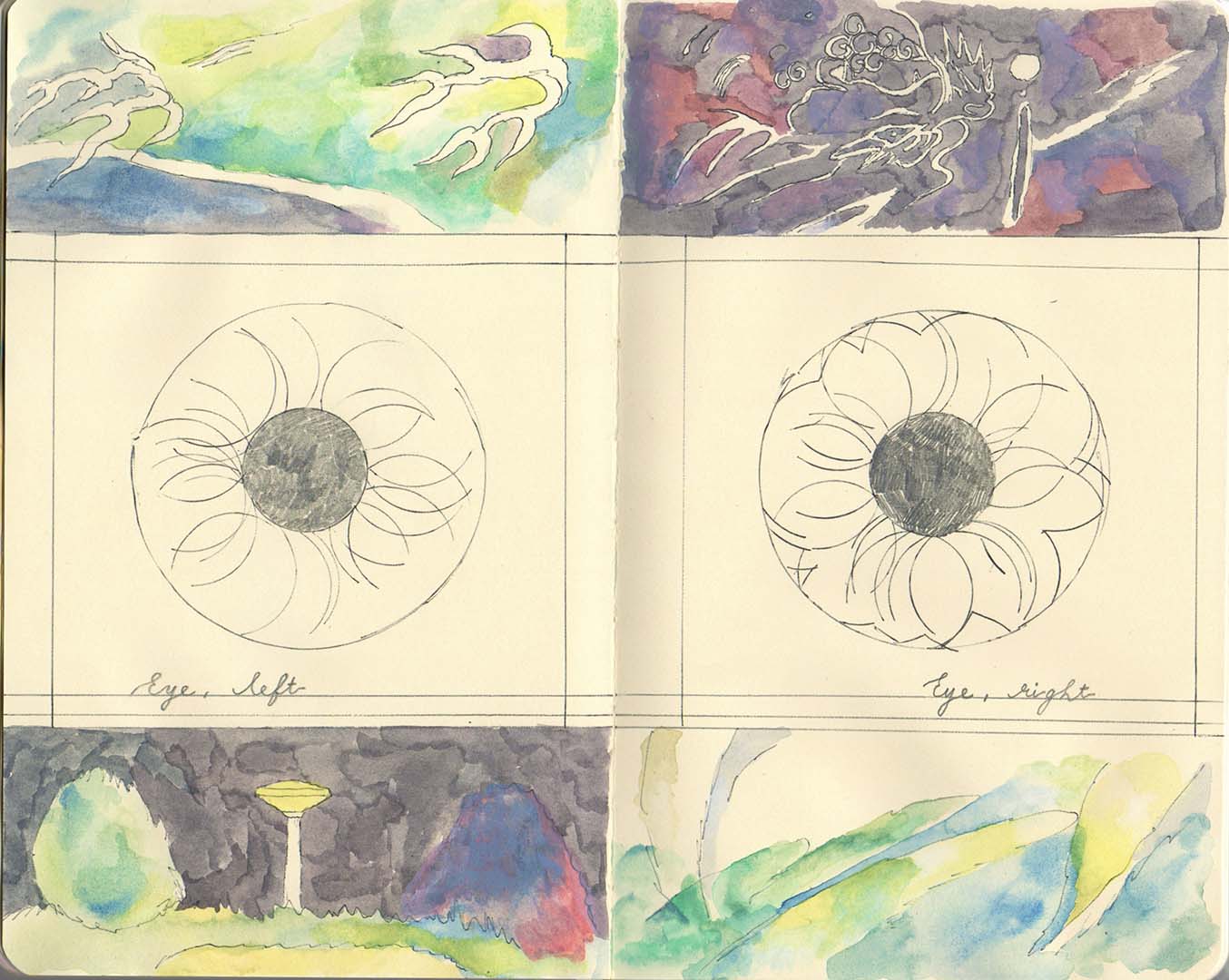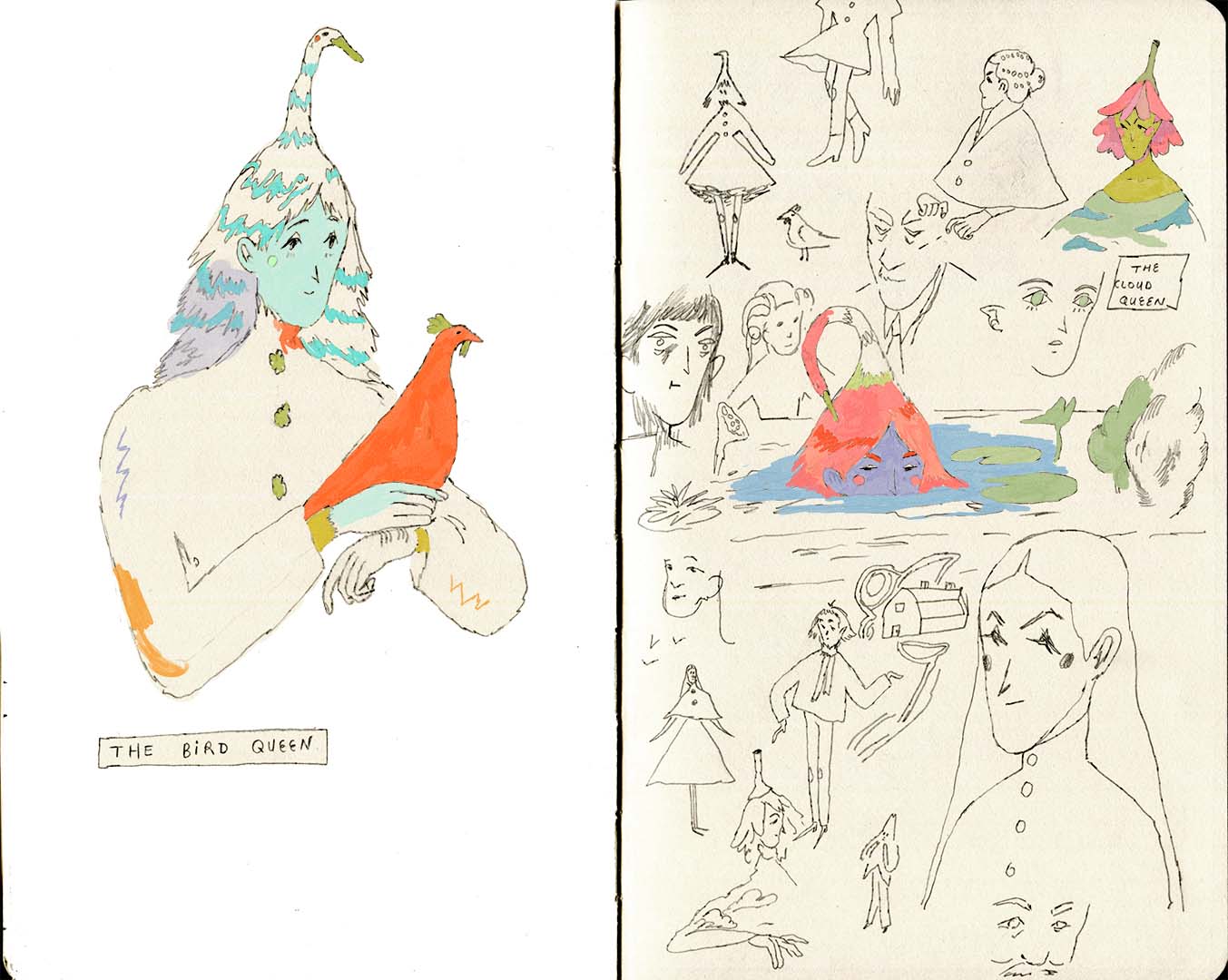 Here are several pages from my sketchbooks. In my sketchbooks I like to experiment and have fun with many mediums.